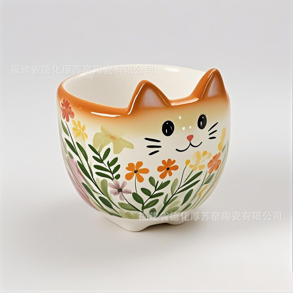 花柄デザインの立体猫型セラミックボウル、デザートボウル、サラダボウル、スープボウルを備えた越境電子商取引カスタマイズ輸出