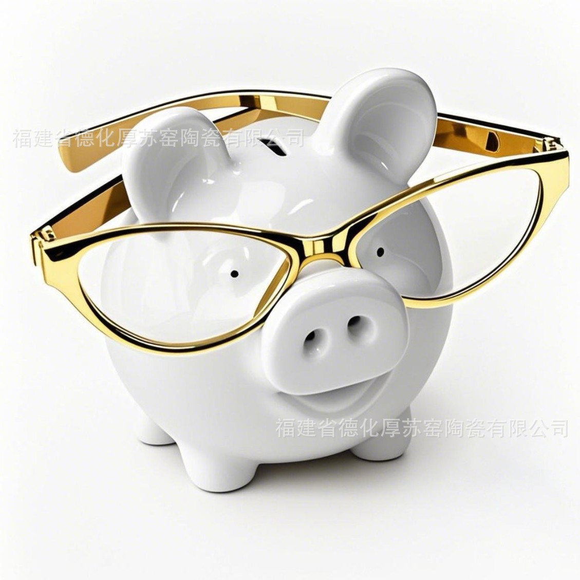 純白の豚セラミック貯金箱ヨーロッパとアメリカの貿易カスタムセラミックメガネホルダーかわいい貯金箱貯金箱