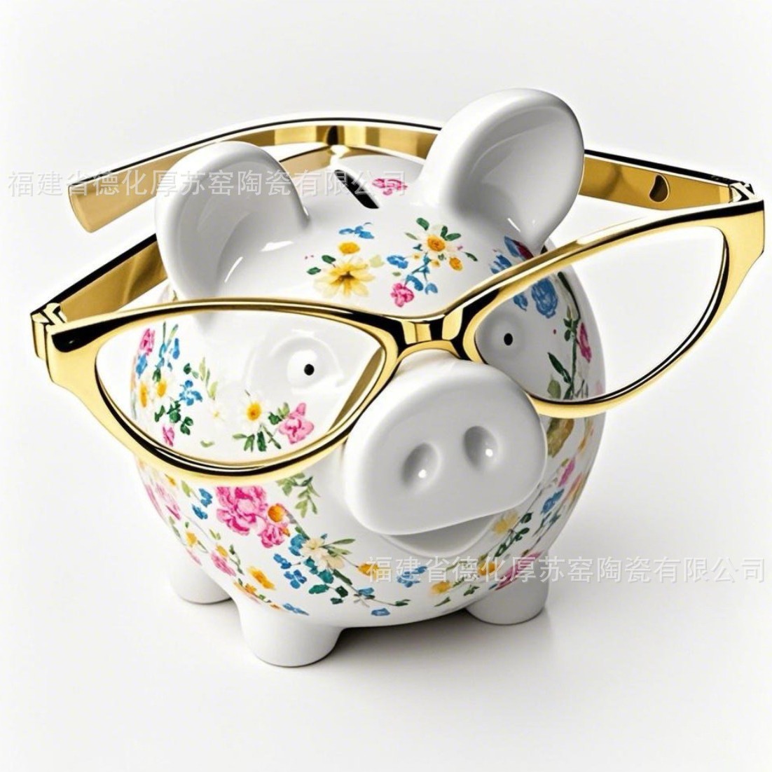 フルフラワープリント豚型セラミックメガネフレームヨーロッパとアメリカのクロスボーダーカスタマイズされた食品フレーム豚セラミック貯金箱