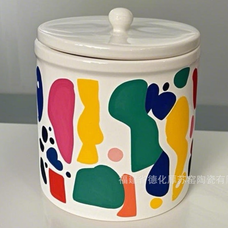 カラフルな落書き円筒形セラミック保存瓶外国貿易クロスボーダーカスタムコーヒーセラミック瓶輸出セラミックビスケット瓶