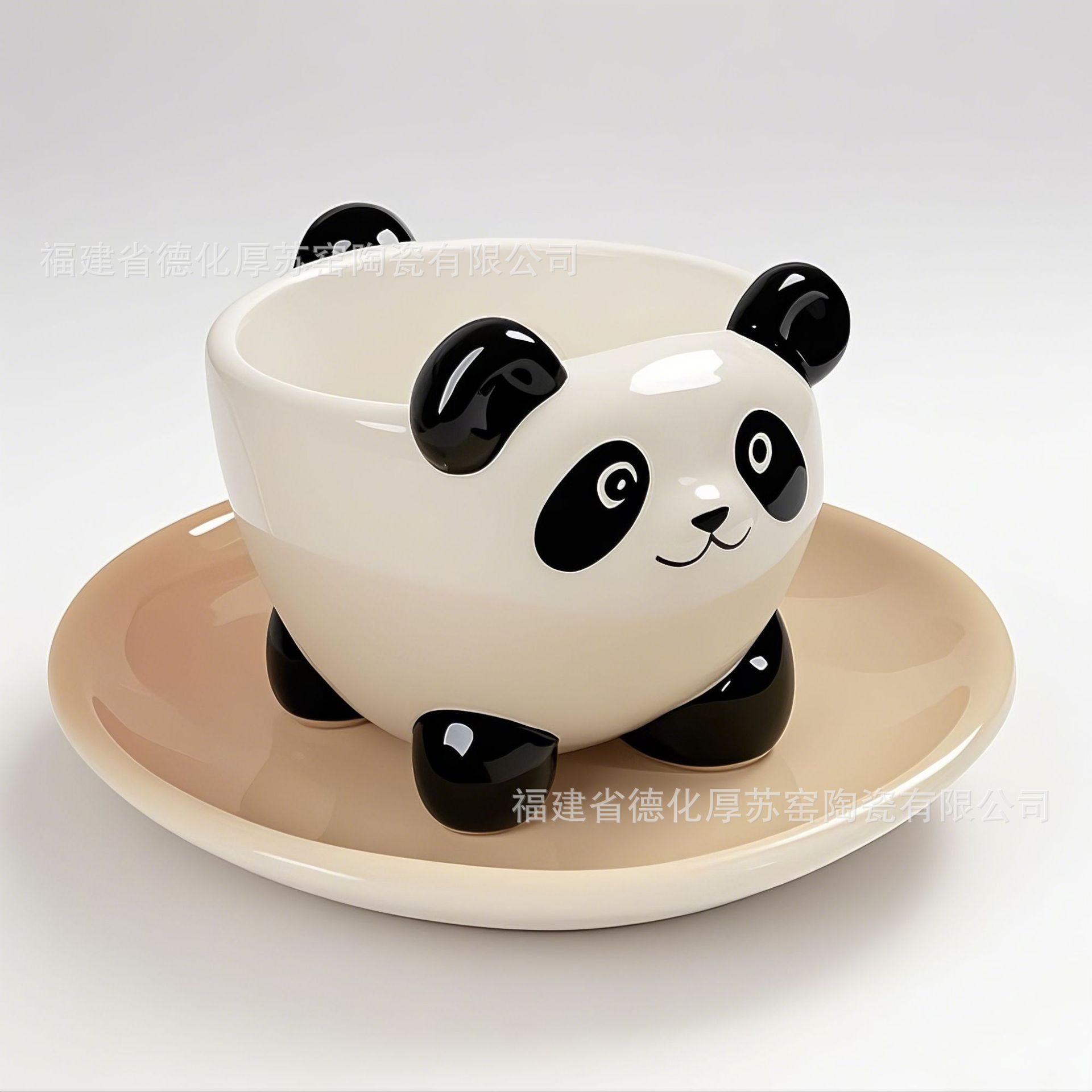 黒と白のパンダの形をしたセラミックマグセット外国貿易クロスボーダーカスタム磁器コーヒーカップ子供用ギフトカップ