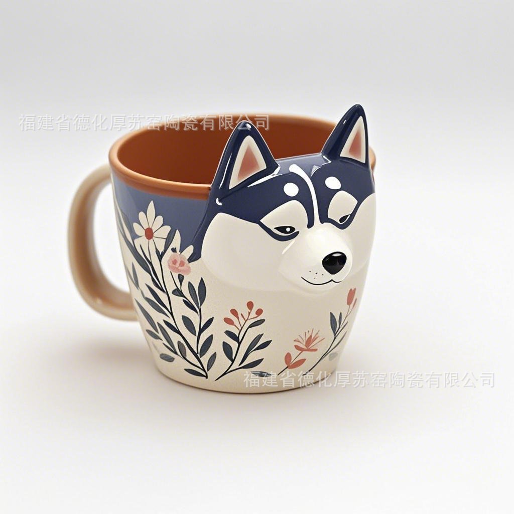 立体レリーフ犬型セラミックマグヨーロッパとアメリカのクロスボーダーカスタマイズフルフラワープリントセラミックマグコーヒーカップ