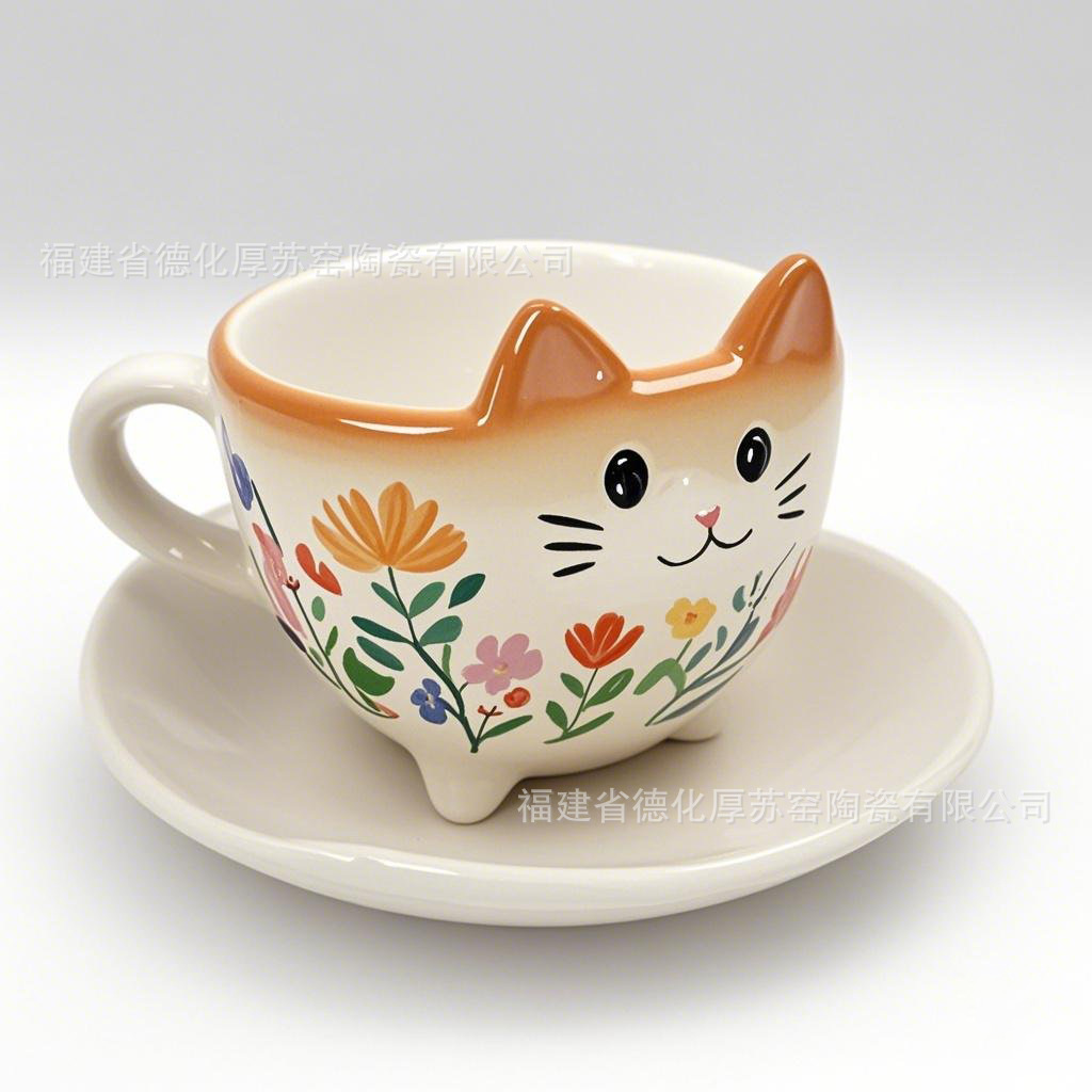 花柄ロゴマグカップ磁器コーヒーカップを備えたクロスボーダーeコマース輸出カスタマイズされた猫の形をしたセラミックカップ