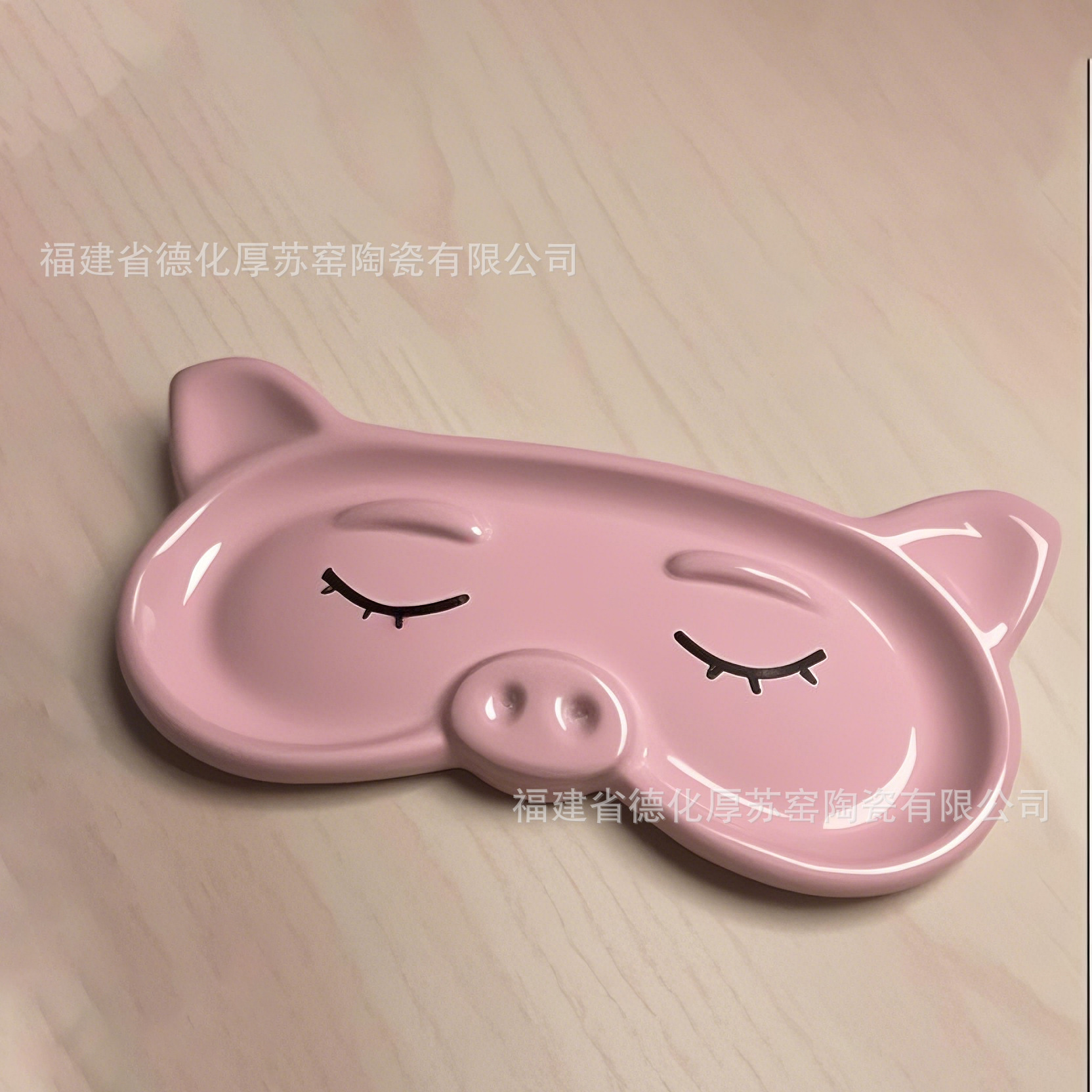 ピンクのエンボス加工の豚セラミックアイトレイ外国貿易クロスボーダーカスタム印刷漫画スタイルメガネフレームメガネホルダー