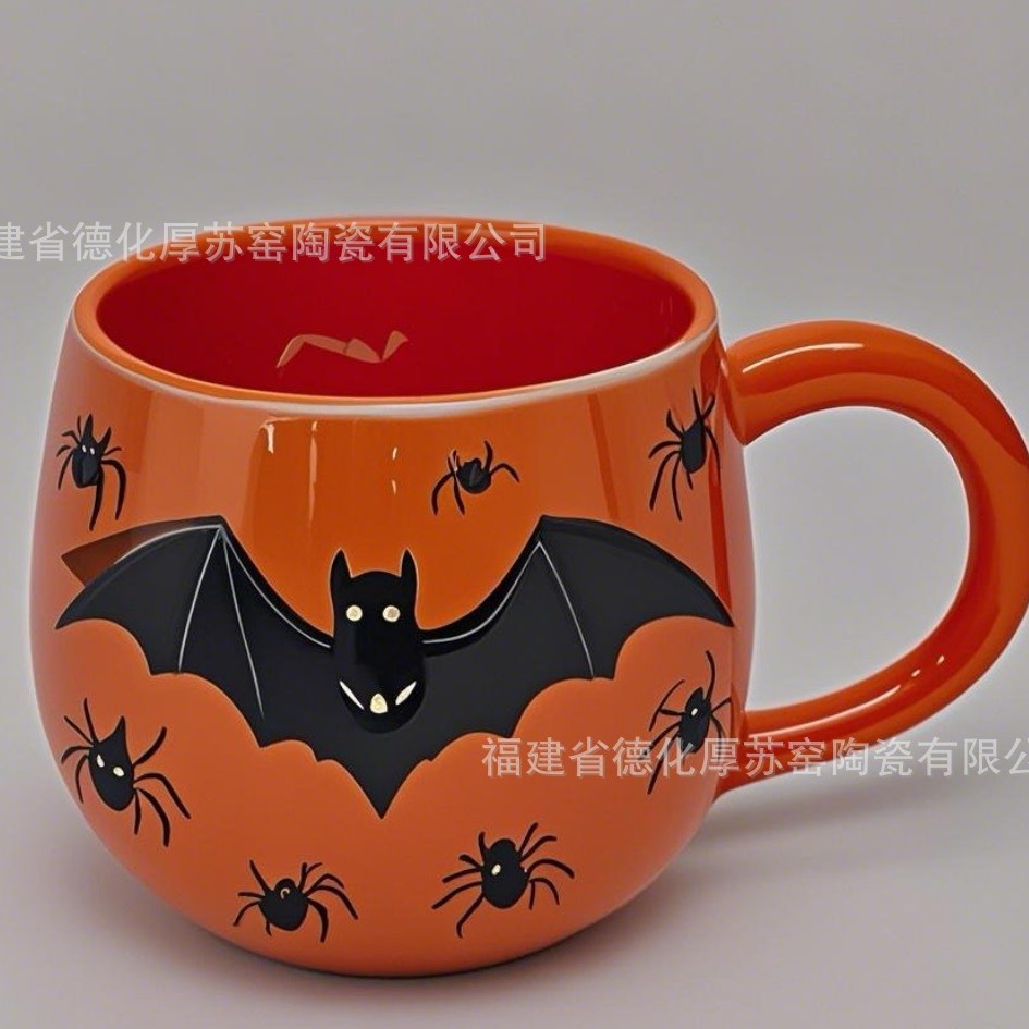 コウモリのクモの図案の陶磁器のカボチャの杯の対外貿易の越境の磁器のコーヒーの杯のハロウィンの装飾の幽霊の日の杯のコップ