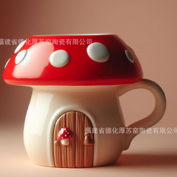 外贸出口定制3D立体浮雕蘑菇屋陶瓷马克杯瓷质咖啡杯ceramic mug
