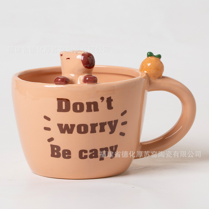 外贸出口定制卡皮巴拉陶瓷杯立体浮雕马克杯新奇动物杯可爱咖啡杯