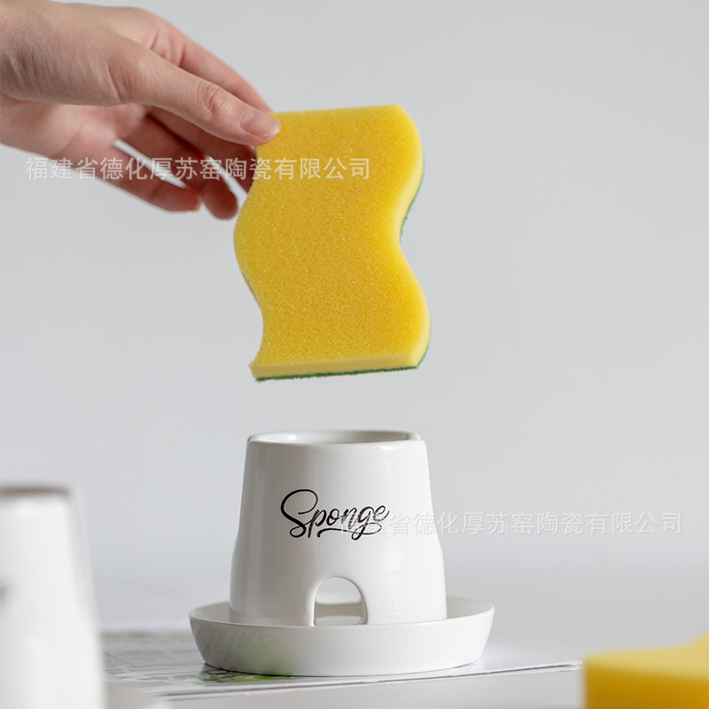 外国貿易輸出クロスボーダー白色セラミックスポンジブラシホルダースポンジホルダー農舎シンクラック収納