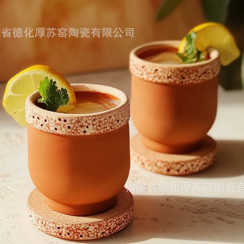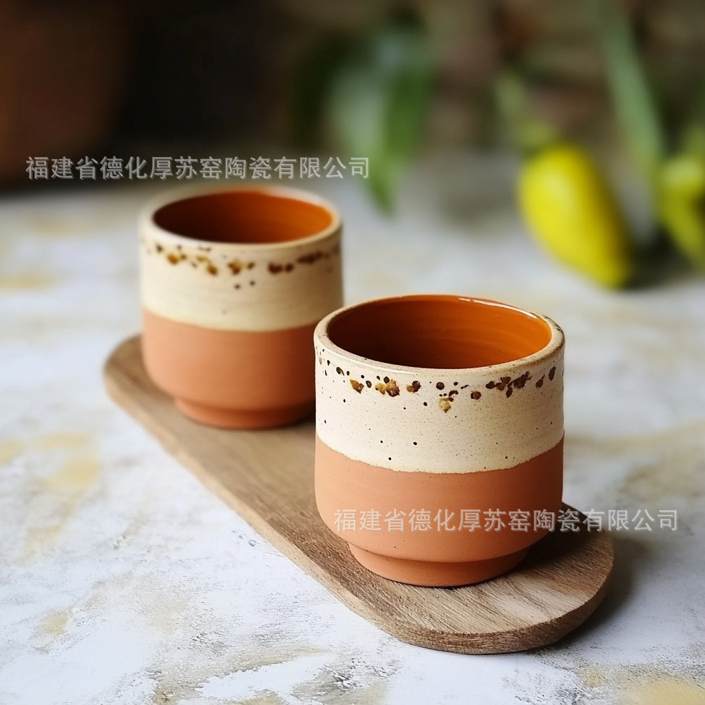外贸出口定制圆柱形黏土马克杯瓷质咖啡杯墨西哥风格陶瓷杯黏土杯