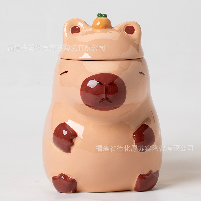欧美出口定制立体卡皮巴拉陶瓷马克杯带盖新奇动物杯浮雕咖啡杯
