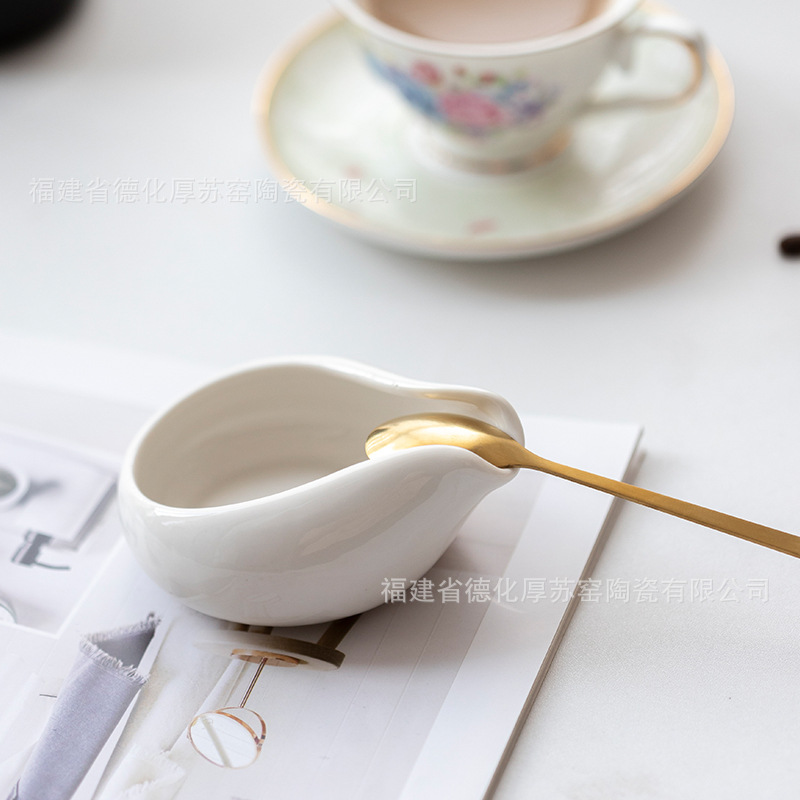 国境を越えて欧米の対外貿易の白い陶磁器のミルクの小さい陶磁器のミルクポットのシロップの瓶のミルクのディスペンサーのミルクソースを輸出します。