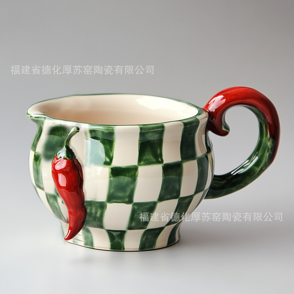 欧美出口定制浮雕辣椒陶瓷杯绿色马赛克咖啡杯丰收节蔬菜马克杯