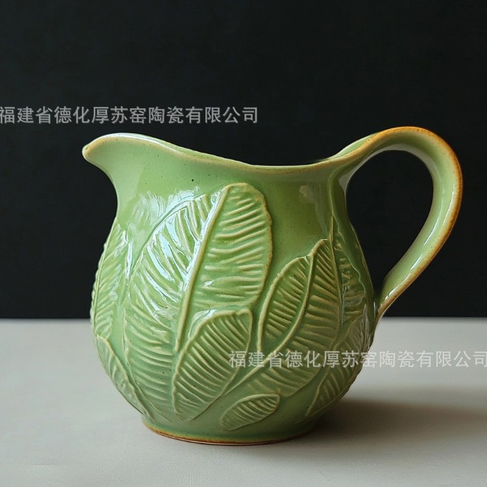 ヨーロッパとアメリカの輸出カスタマイズされたエンボスパターンセラミックミルクポットグリーンクリームポットハンドル付き小さなソースポットコーヒーミルクポット