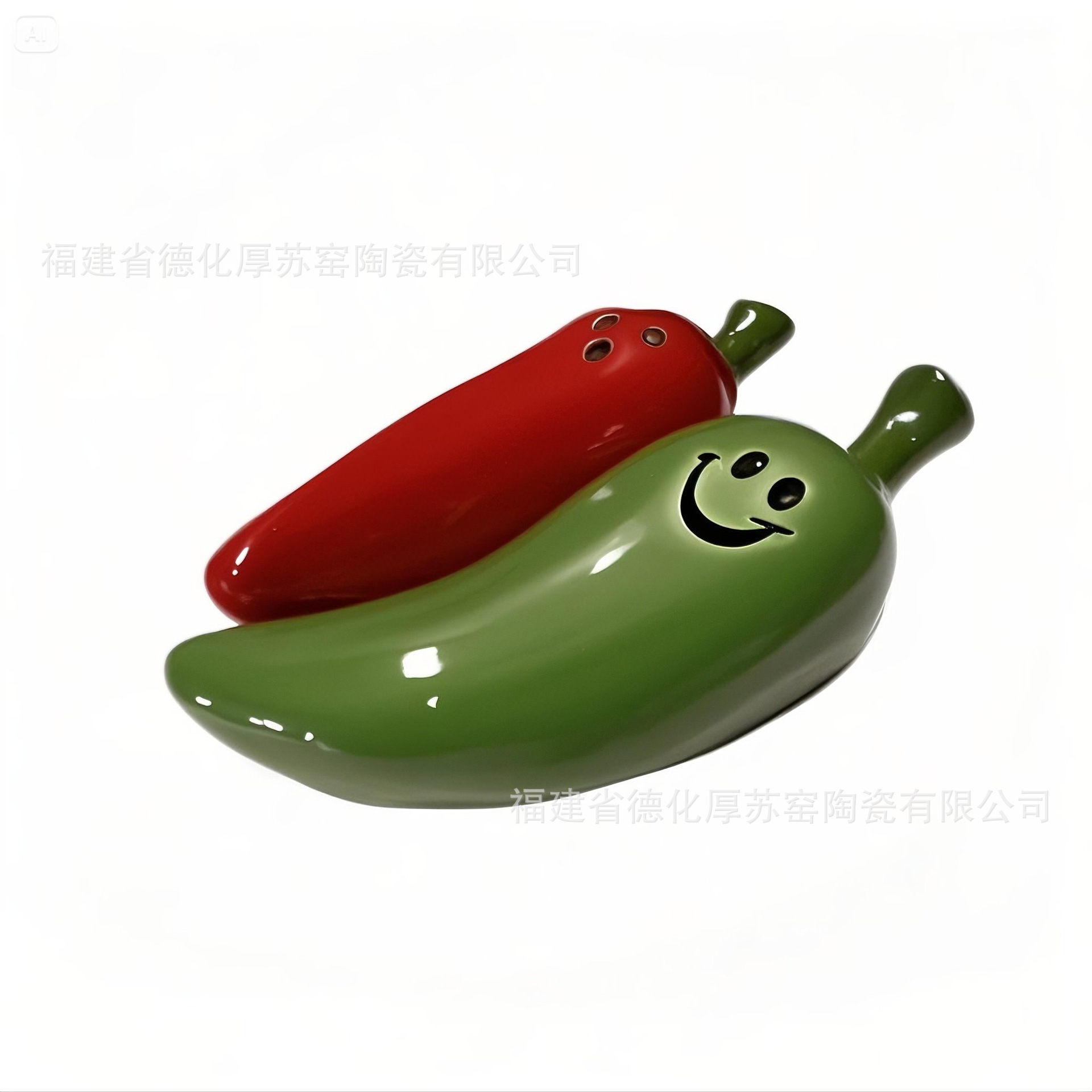 カスタマイズされた赤い唐辛子の形をしたセラミックペッパーとソルトシェイカーセットヨーロッパとアメリカの輸出外国貿易漫画固体調味料ボトル