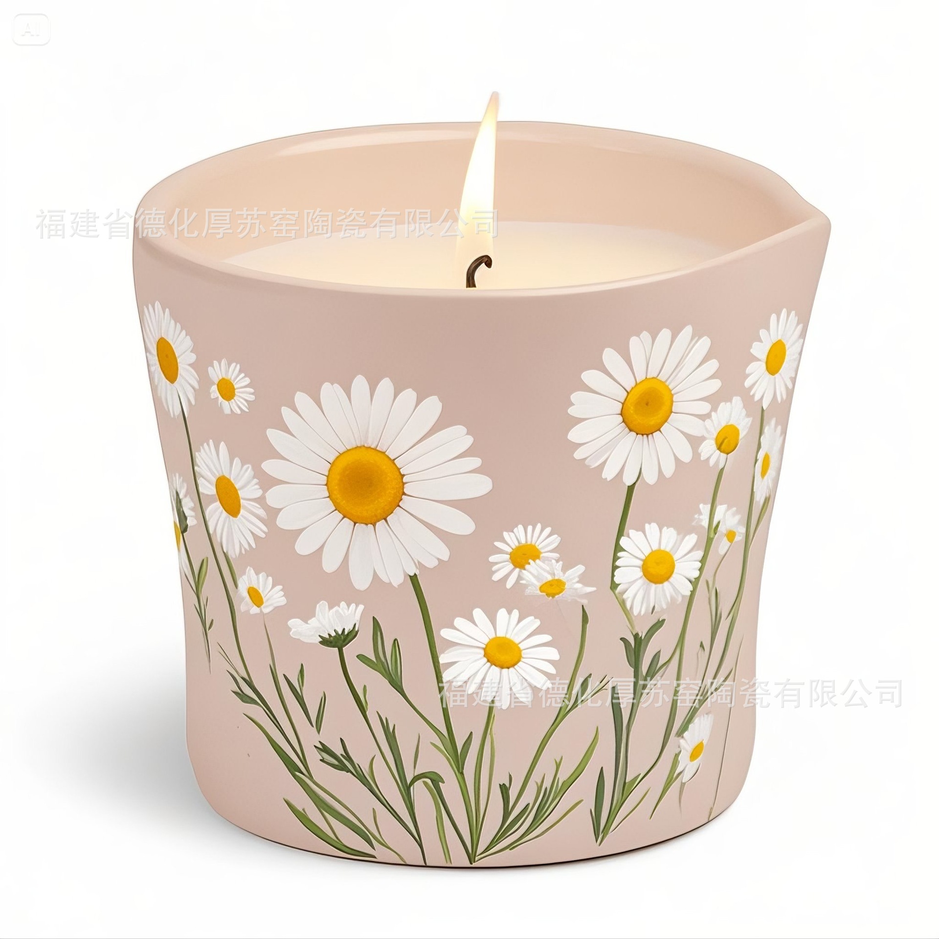 カスタマイズされた菊模様の香りのキャンドルセラミックカップクロスボーダー輸出外国貿易ティーライトキャンドルホルダーホームデコレーションキャンドルカップ