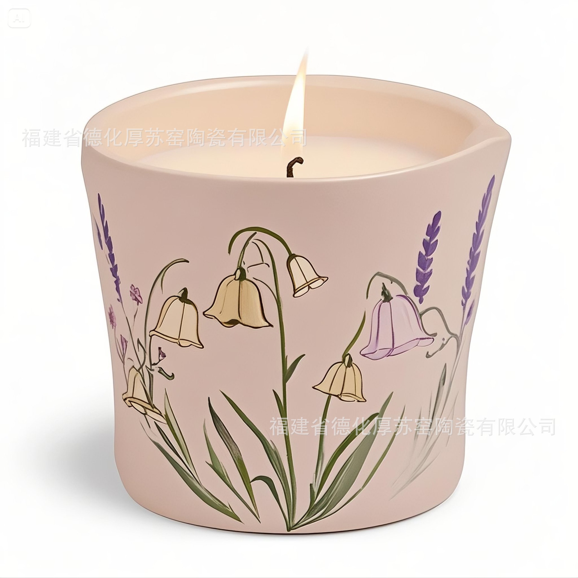 カスタマイズされたベルフラワーセラミックキャンドルカップヨーロッパとアメリカの輸出インスタイルセラミックキャンドル容器アロマセラピーキャンドルカップ空のカップ