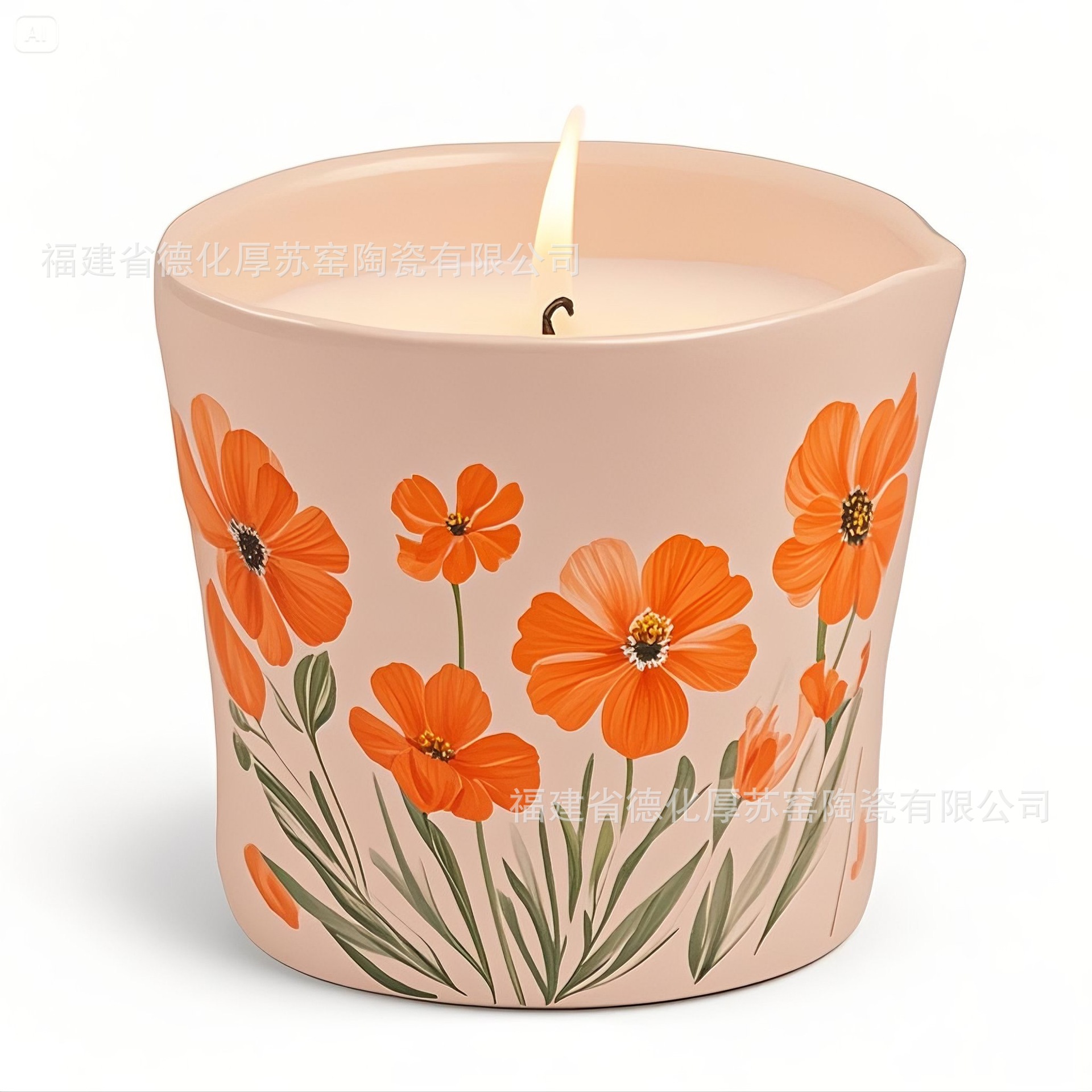 既存の金型オレンジフラワーセラミックキャンドルカップ空カップクイックアマゾン輸出クロスボーダーカスタムアロマセラピーキャンドルカップ