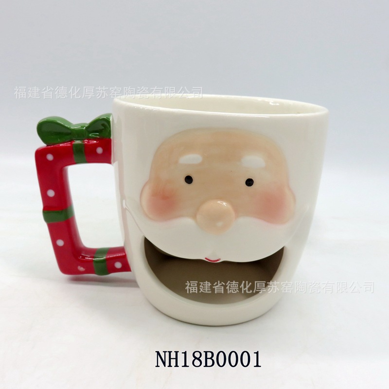 圣诞节装饰陶瓷马克杯创意3D浮雕圣诞老人马克杯圣诞礼品咖啡杯