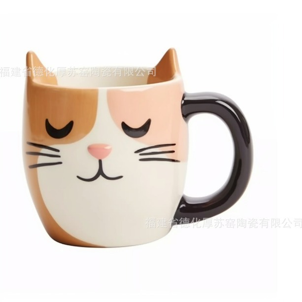 欧美出口3D闭眼猫咪马克杯创意卡通陶瓷杯牛奶杯早餐杯水杯