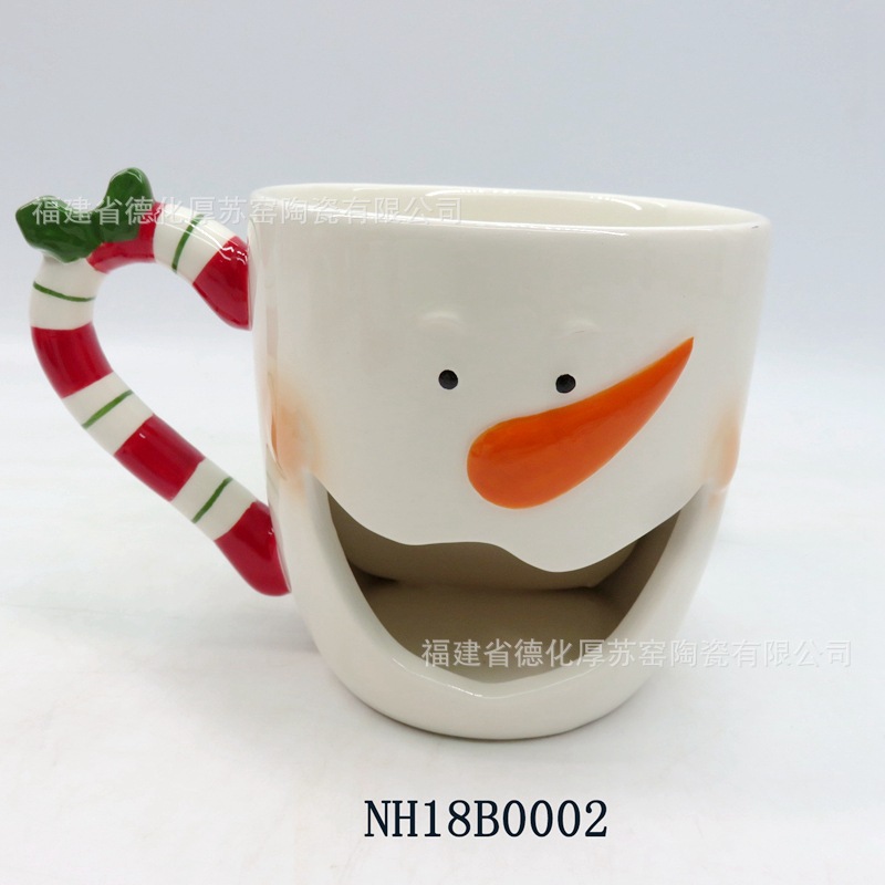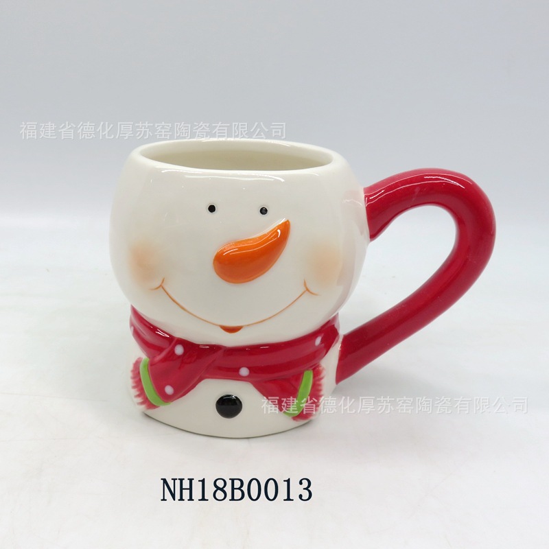 圣诞雪人陶瓷咖啡杯创意3D浮雕雪人马克杯创意卡通造型陶瓷杯水杯
