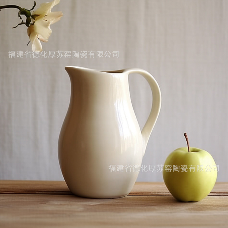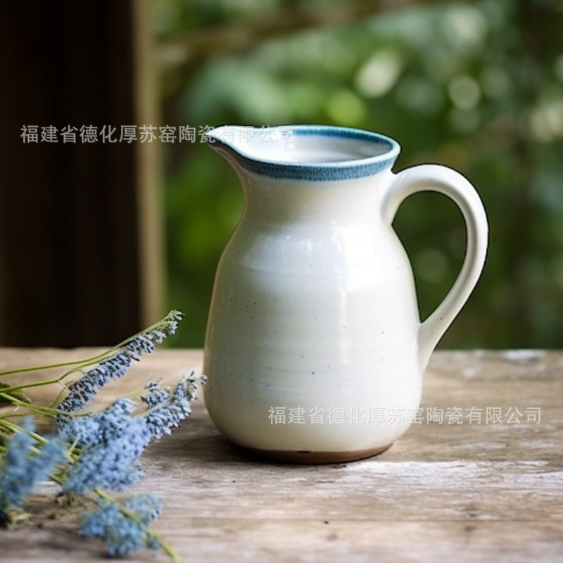 定制器型复古乡村风格白瓷系列奶壶陶瓷冷水壶法式复古陶瓷凉水罐