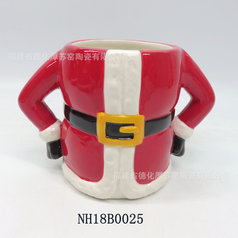 欧美定制双手柄陶瓷马克杯3D圣诞服装咖啡杯圣诞装饰礼品杯水杯