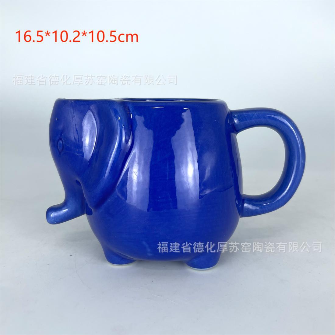 现有模具定制蓝色大象咖啡杯陶瓷茶叶袋杯出口大象茶杯亚马逊热销
