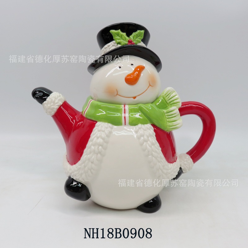 跨境定制立体浮雕雪人陶瓷奶壶大号圣诞茶壶节日装饰冷水壶奶罐