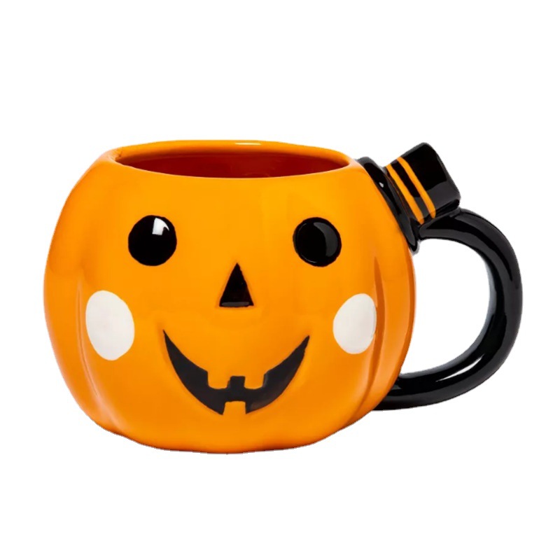 彩色陶磁器ハロウィーンカボチャカップ輸出対外貿易オレンジ鬼節カボチャコーヒーカップカボチャキャンディーカップ国境を越えた