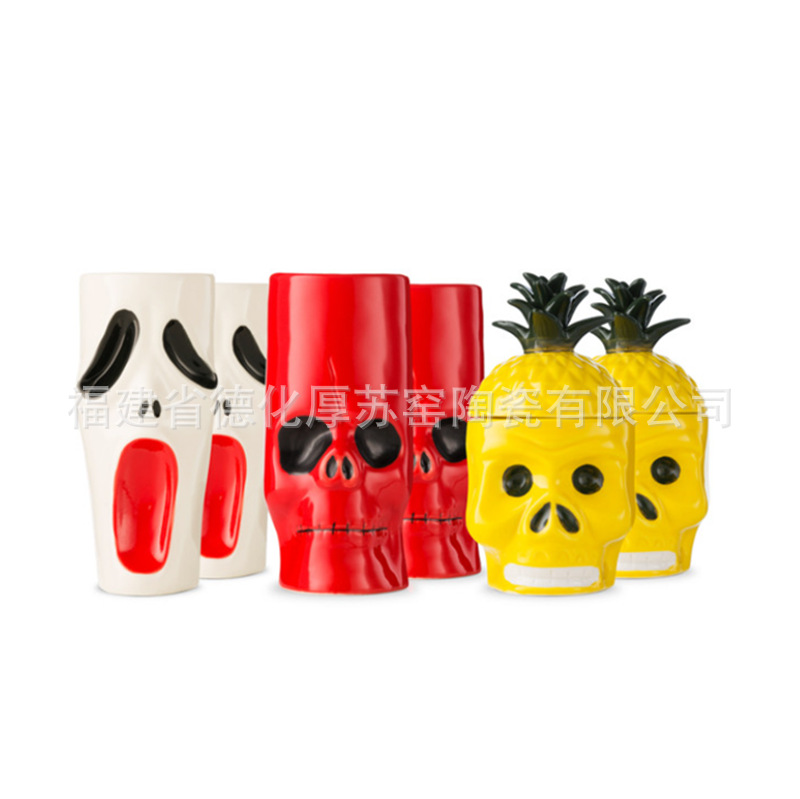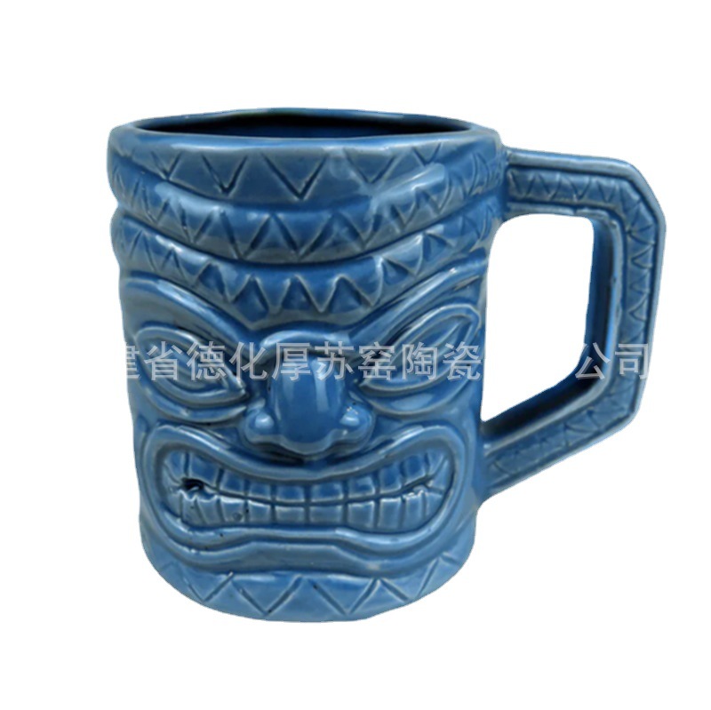 オーダーメイドレリーフ色絵奇妙なセラミックティキカップパーティーセット-ビーチカクテル6個セット