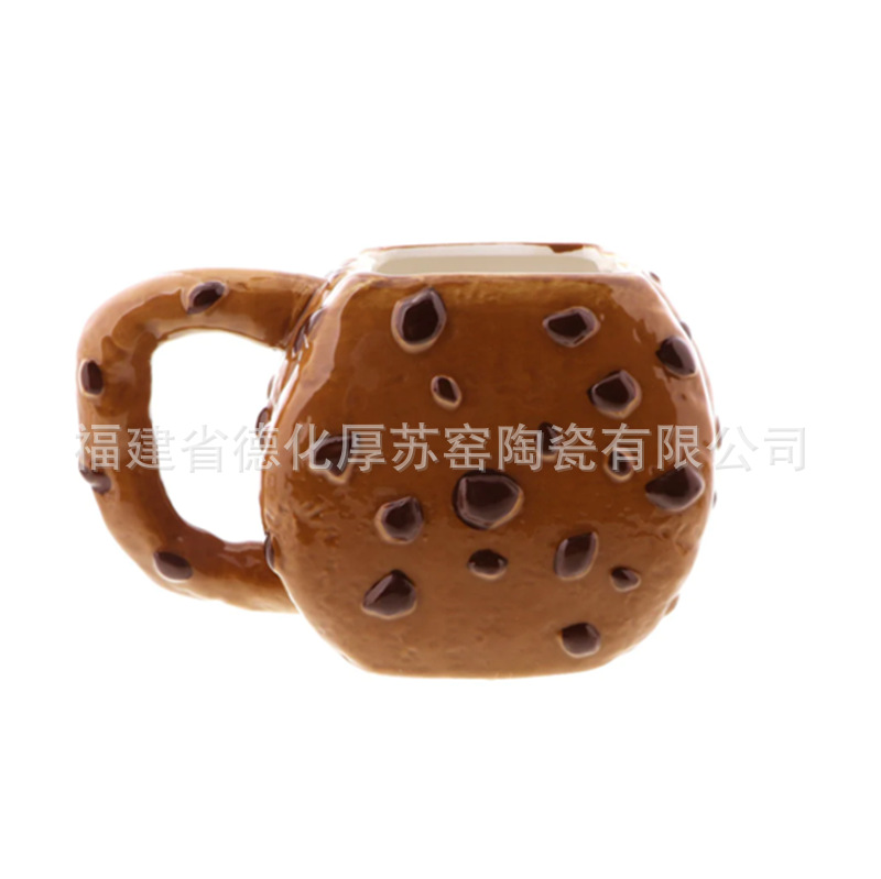 定制彩绘陶瓷饼干杯出口外贸3D棕色咖啡饼干杯跨境饼干礼品杯外贸