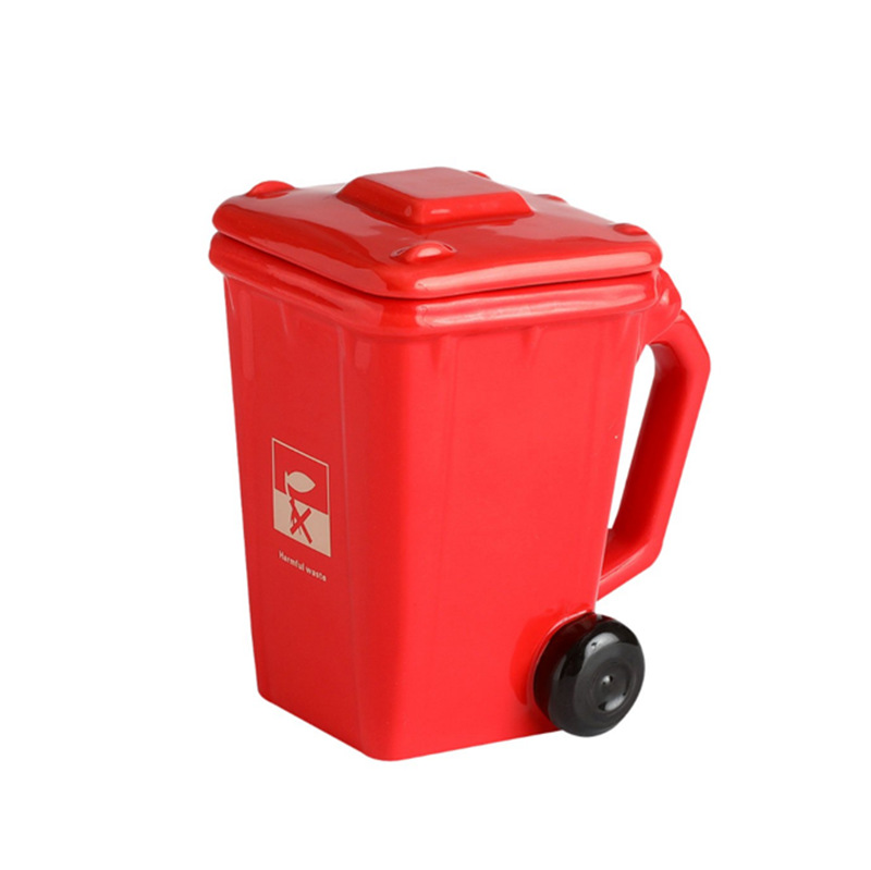 磁器ごみ箱コーヒーカップ輸出対外貿易赤い角型ごみ箱マグカップtrush can mug