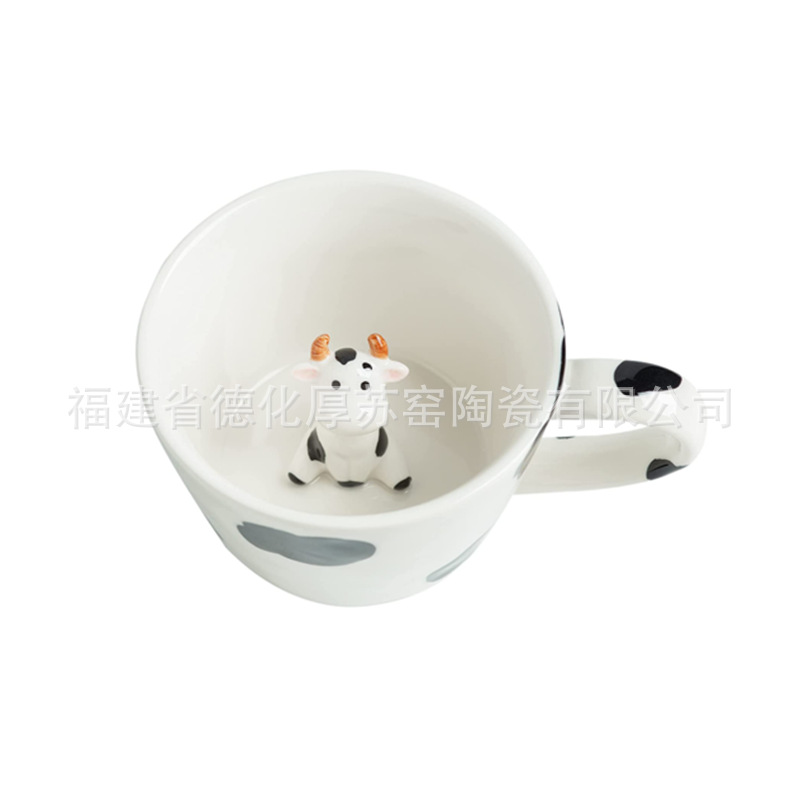 既存の型で作られた漫画風牛の置物マグカップ、輸出用、隠し塗装3D牛コーヒーカップ、ミルクカップ