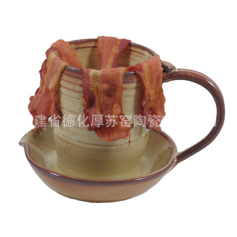 复古陶瓷微波培根炊具杯外贸复古瓷质培根烘培滤油杯出口跨境热销