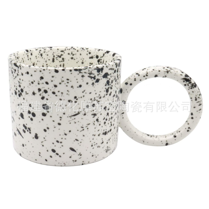 北欧風インクジェット風セラミックコーヒーカップ大ハンドル対外貿易円形大ハンドル不規則インクジェットマグカップ