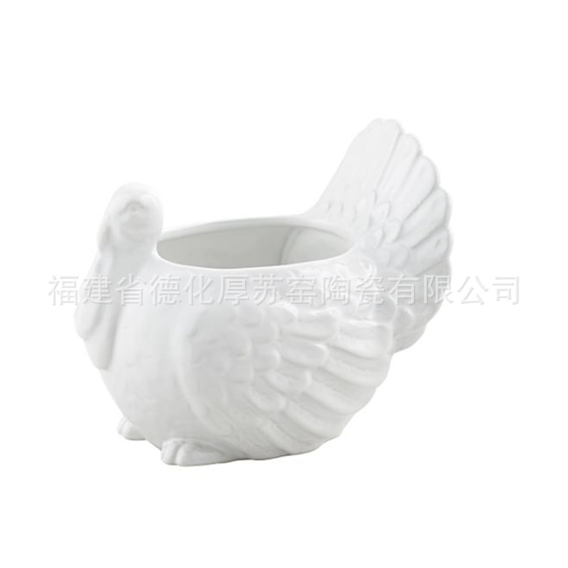 七面鳥の形の陶磁器の闘汁壺は外国貿易の磁器の汁の仲間の浮き彫りの形の白い七面鳥の味噌の壺を輸出します。