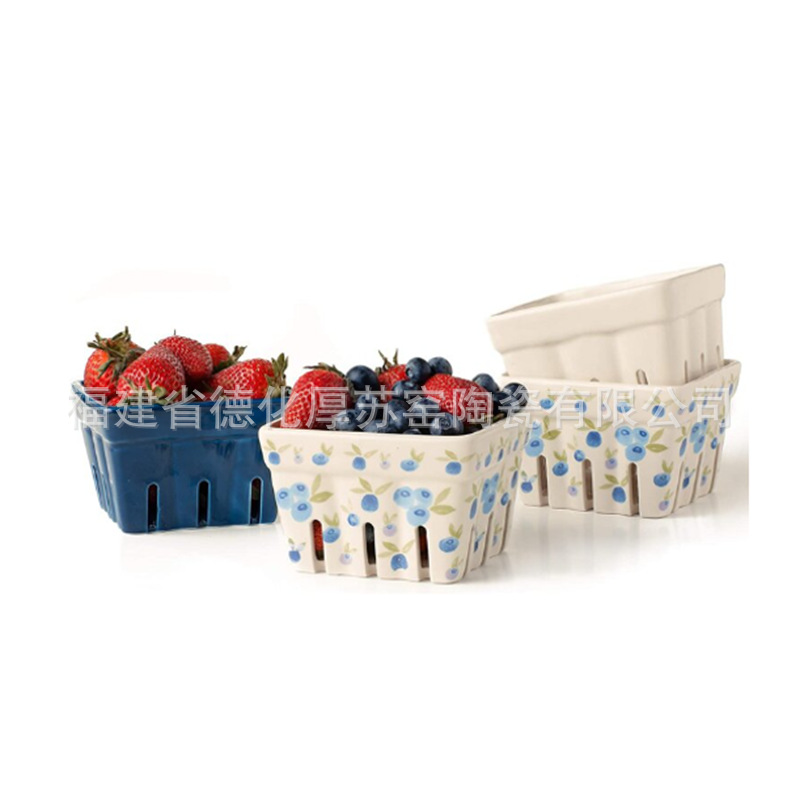 アマゾンの人気ロマンチックな花いっぱいのデザイン磁器の果物かごの対外貿易の小さい角の陶磁器の果物かごの輸出