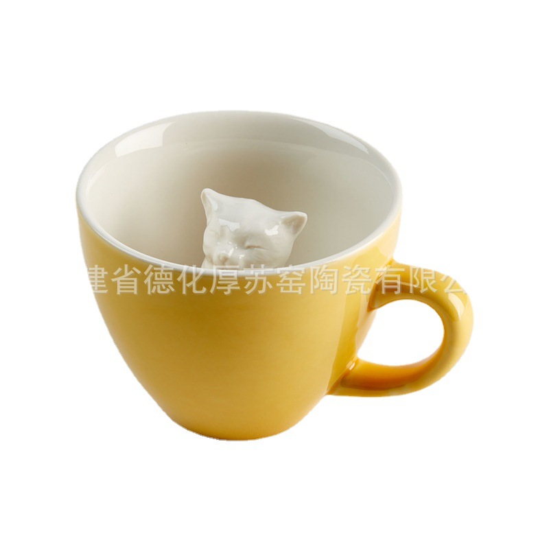 古典的な彩色白雲土猫ギフトカップ輸出輸出輸出国境を越えて3d立体猫コーヒーカップを供給する