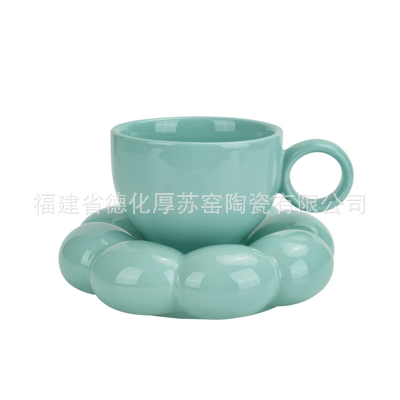 アマゾン爆品陶磁器の太陽花コーヒーカップ皿をカスタマイズして、国境を越えて水色の太陽花カップ皿セットを提供する