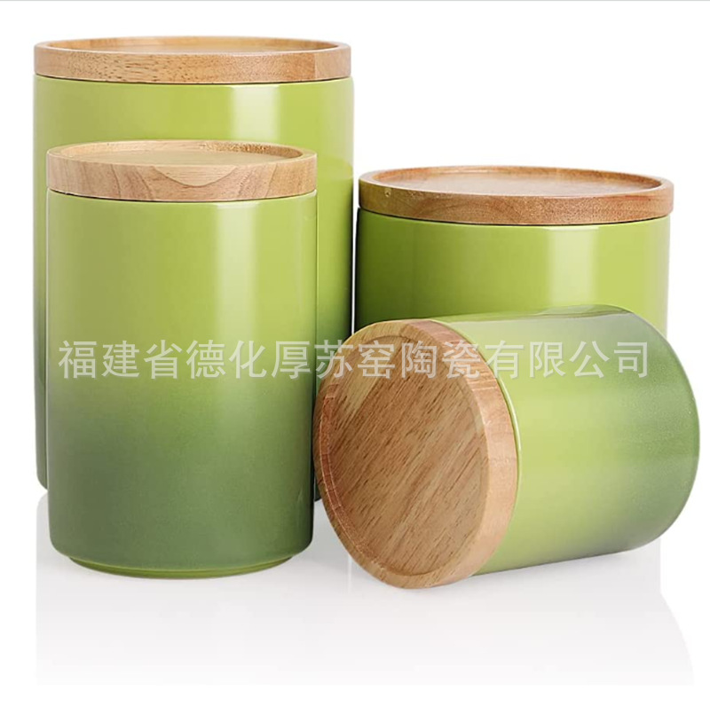 グラデーションの薄い緑色の4つの陶磁器の台所の密封の缶の対外貿易のよく売れている積層することができます。