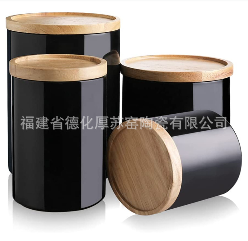 磁器の4つのキッチンの密封貯蔵タンクの輸出の経典の4つの黒色の畳み込み可能な陶磁器のコーヒー缶の輸出