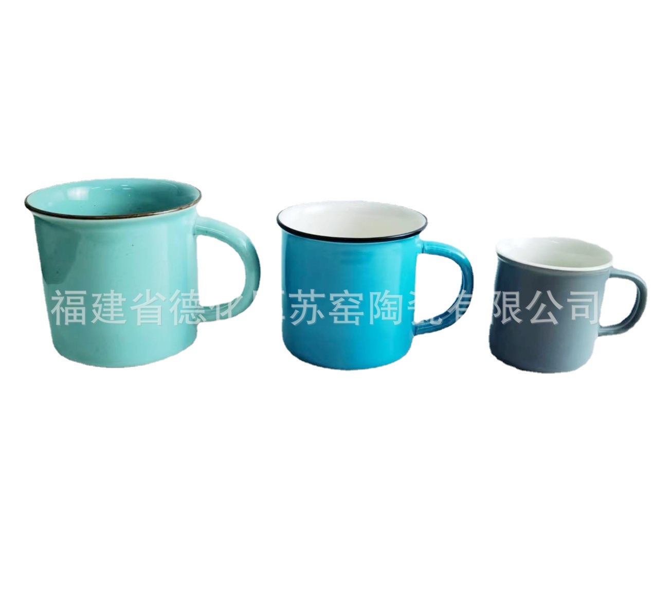 国境を越えて人気のあるトランペットセット三陶磁キャンプコーヒーカップ輸出対外貿易磁器キャンプマグカップ大中小