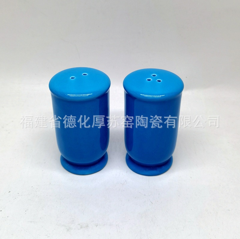 クロスボーダーの青い陶磁器の胡椒の調味料の瓶の輸出の厚い蘇窯の小さいサイズの青い直筒の胡椒の缶の塩の瓶