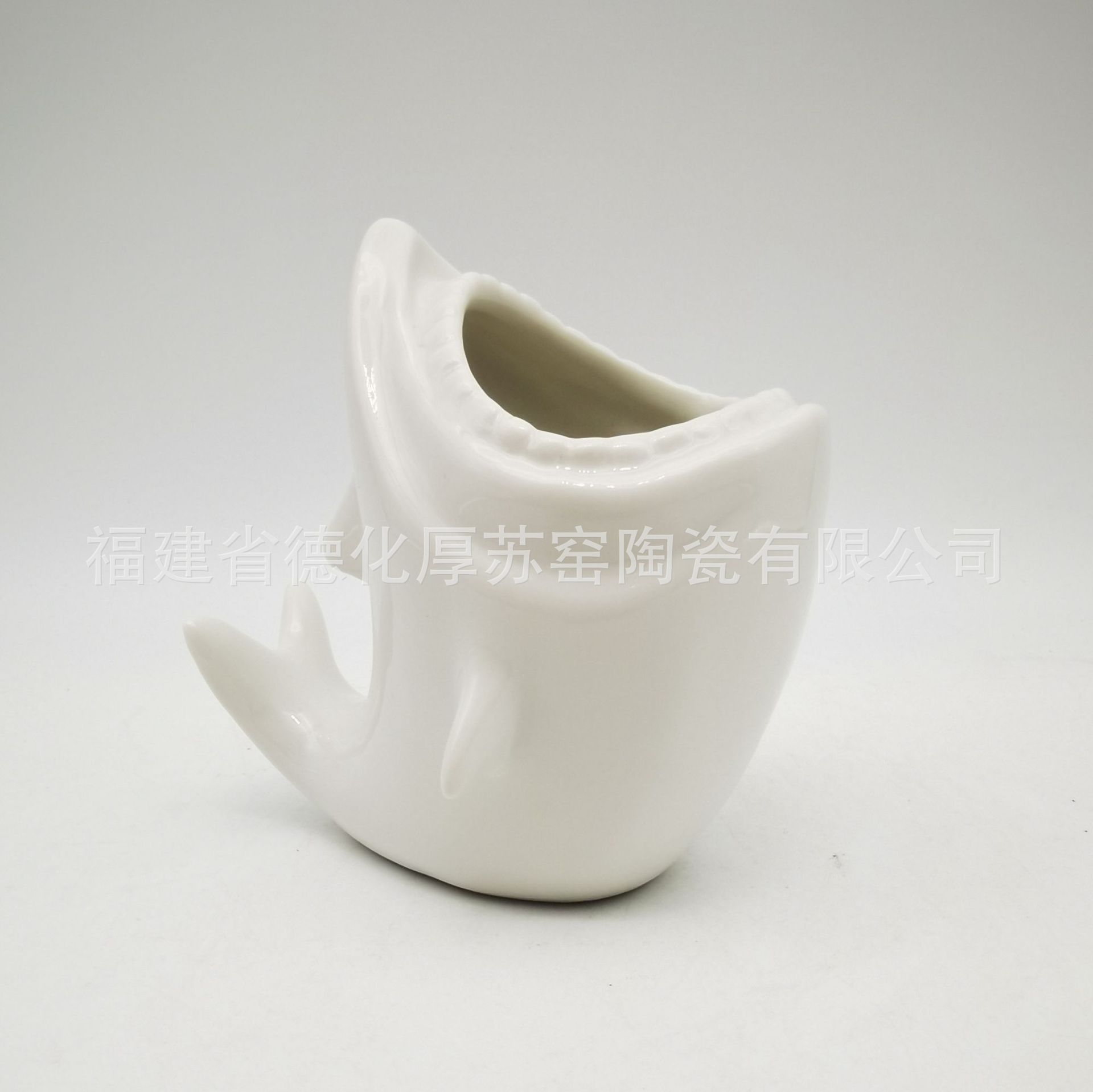 白い磁器のデスクトップ収納サメ缶輸出厚蘇窯サメペンホルダー輸出サメ化粧ブラシ缶