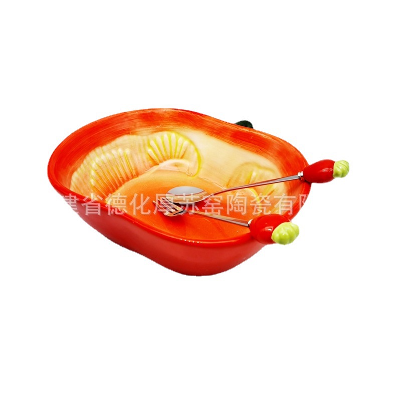 磁器のトマトの形の果物の野菜の碗の輸出の厚い蘇窯の越境の陶磁器の果物の碗のスプーンのセットの供給商