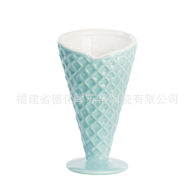3dクリエイティブセラミックアイスクリームカップ輸出水色クロスボーダー人気磁器アイスクリームカップ
