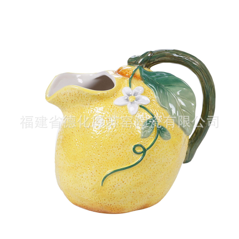 陶磁器の絵のレモンの形の冷たい水筒の対外貿易の輸出の3dのレリーフのレモンの形の磁器の質の冷たい水筒のコーヒーポット