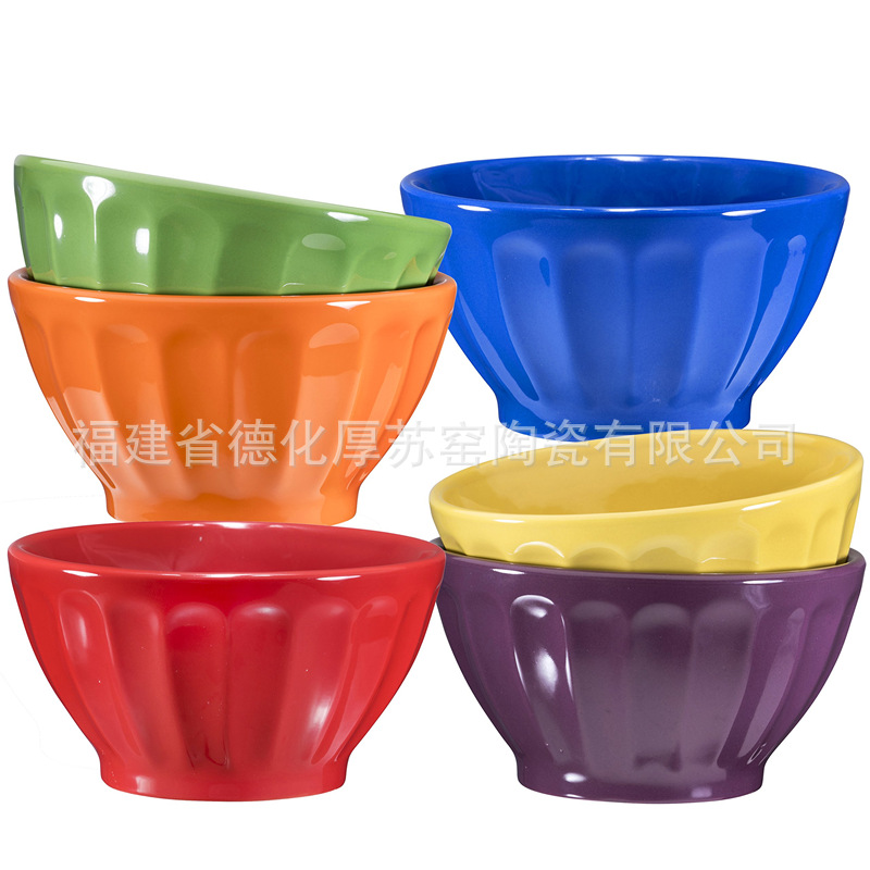 国境を越えたファッションキャンディー色セット六陶磁器アイスクリームボウル輸出キャンディー色磁器アイスクリームボウル朝食ボウル