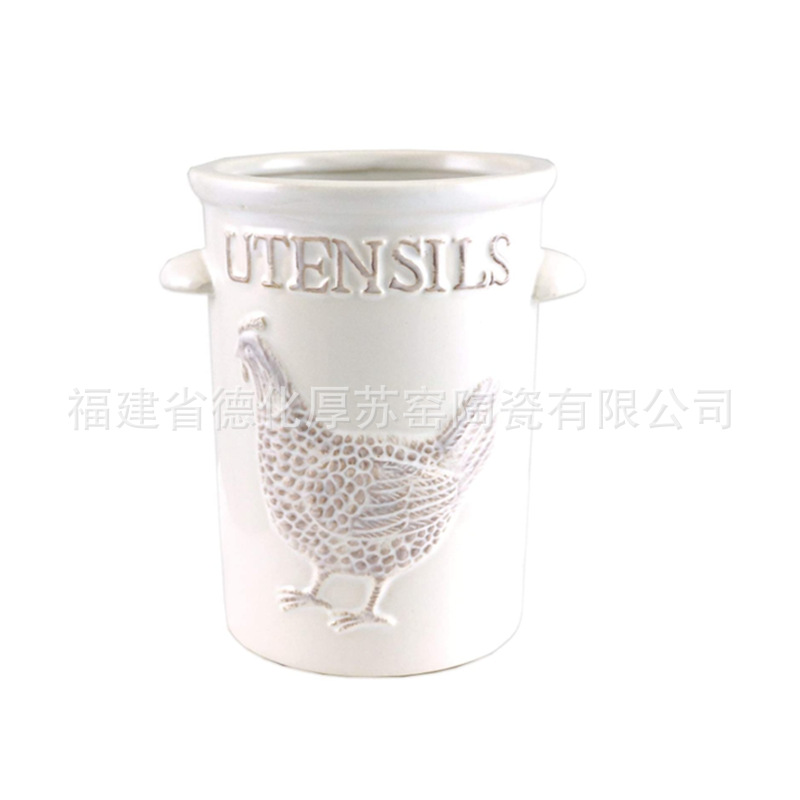 外販田園風雄鶏レリーフ陶磁器シャベルラックキッチン箸シャベル収納缶収納缶輸出