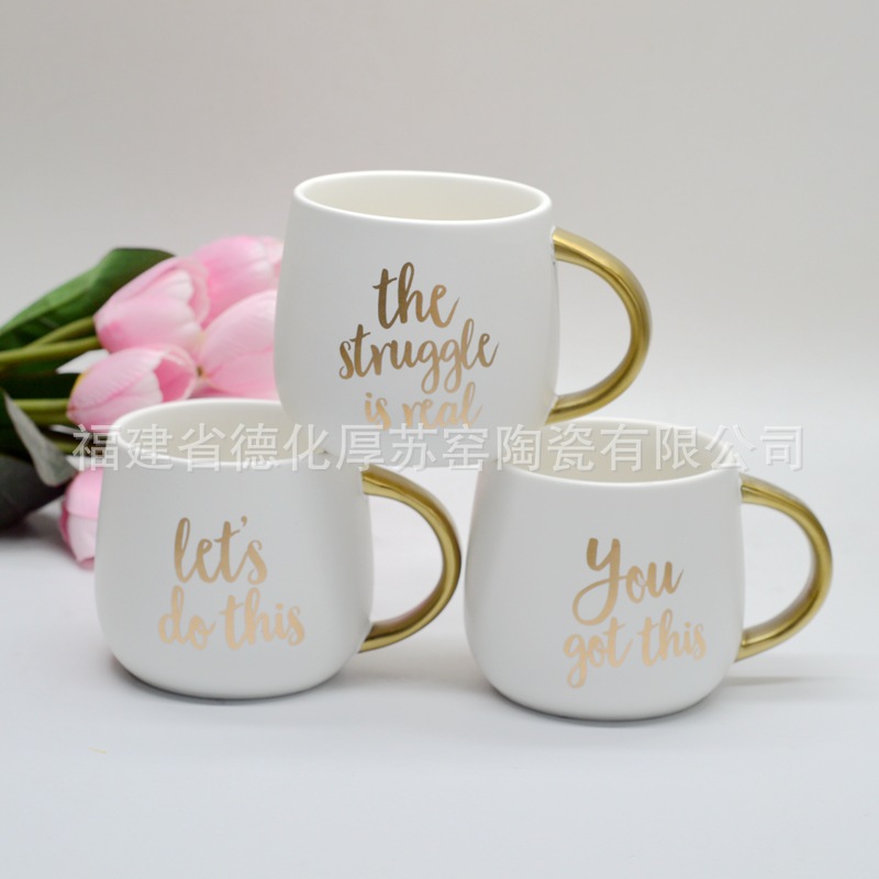 350ml高品质ゴールドハンドルセラミックコーヒーカップ输出外国ピンクロスボーダー热い贩売ゴールドハンドルマグカップ